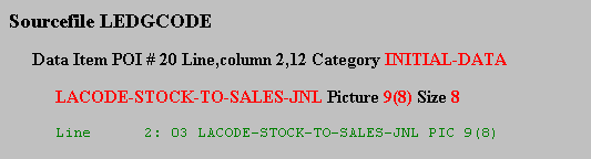 The sample above shows the location of the definition for each data item and the first statement using it.