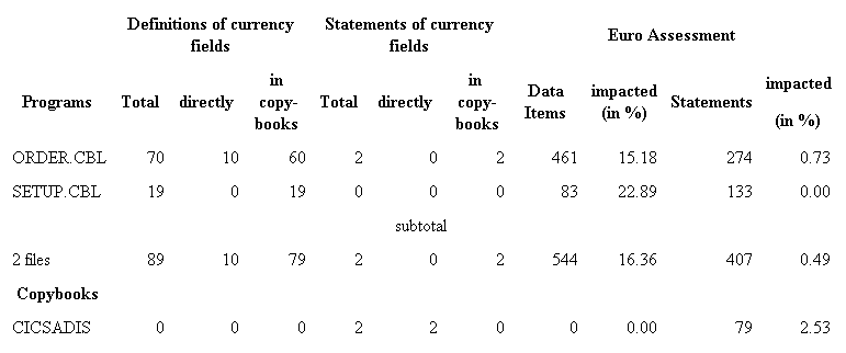 This report is useful if you are trying to obtain a rough assessment of the amount of effort required to convert your application to the euro.
