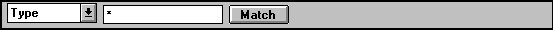 The Match edit box is a field where an item's name is entered. The pull-down list box specifies how the information in the information window will be organized. After these parameters have been established the Match button initiates the search and fills the information window with results.