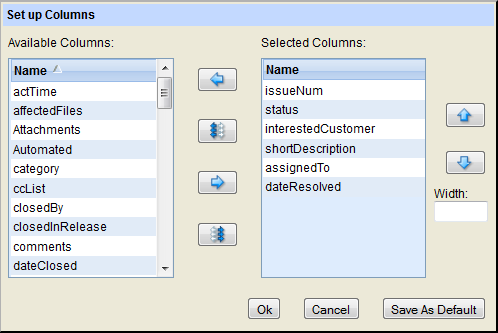 When you click Ok to close the dialog box, the changes you have made are reflected immediately in the Query Results pane. Changes to the query's column setup are not saved in the repository until you invoke the