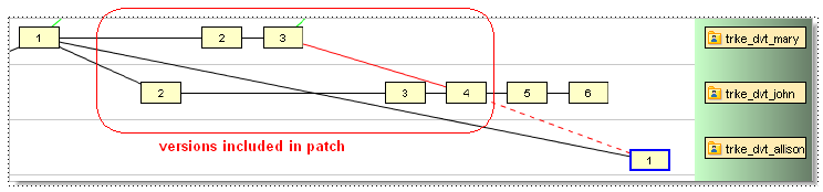 Allison patches version trike_dvt_john/4 into her workspace, creating version