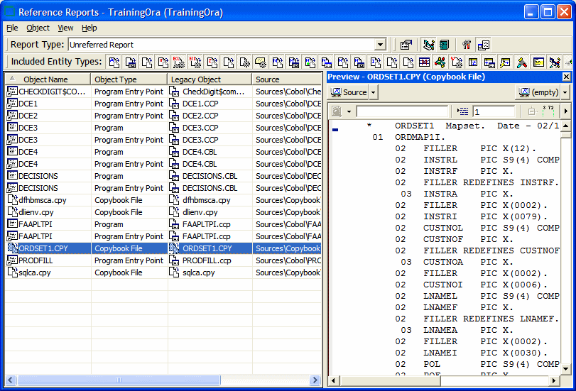 Use Reference Reports to track referential dependencies in verified project source. To open the Reference Reports window, select a project in the Repository Browser and choose Prepare > Reference Reports.