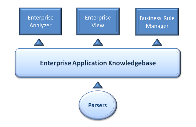 Enterprise Analyzer is a suite of PC-based software products for storing, analyzing, and re-architecting enterprise applications. The products are deployed in an integrated environment with access to a common repository of program objects. Language-specific parsers generate repository models that serve as the basis for a rich set of diagrams, reports, and other documentation. Each product is separately licensed.