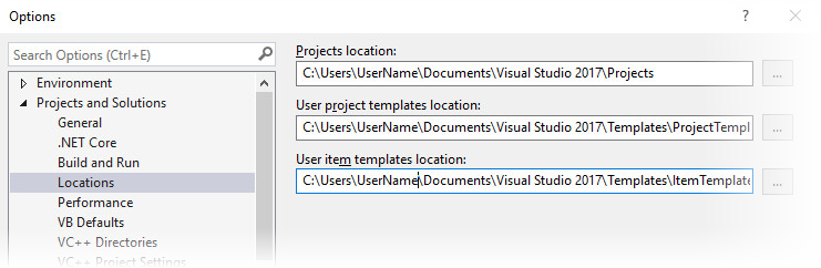 The Projects location field defines the default location for storing new projects. You can change this path if you are using a different working folder.