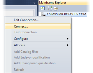 1. In the Mainframe Explorer window, right-click the mainframe connection, then click Connect.