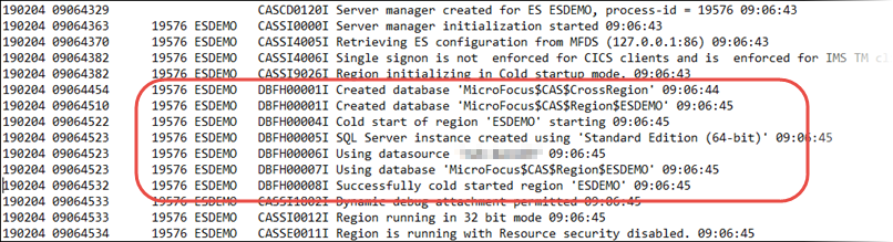 Tip: You can cold-start a region using the /s:c option with the casstart command on the command line.