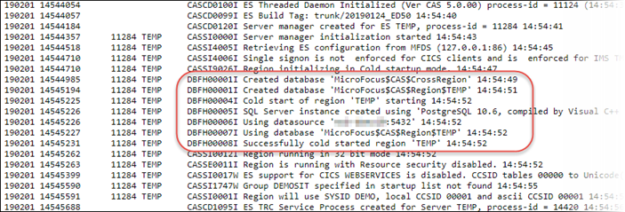 Tip: You can cold-start a region using the /s:c option with the casstart command on the command line.