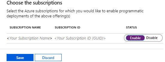 On the Overview page for the Subscription in the left pane under Settings, select Programmatic deployment.