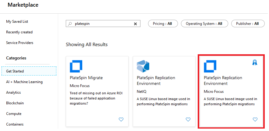 Select the PlateSpin Replication Environment offering by Micro Focus.