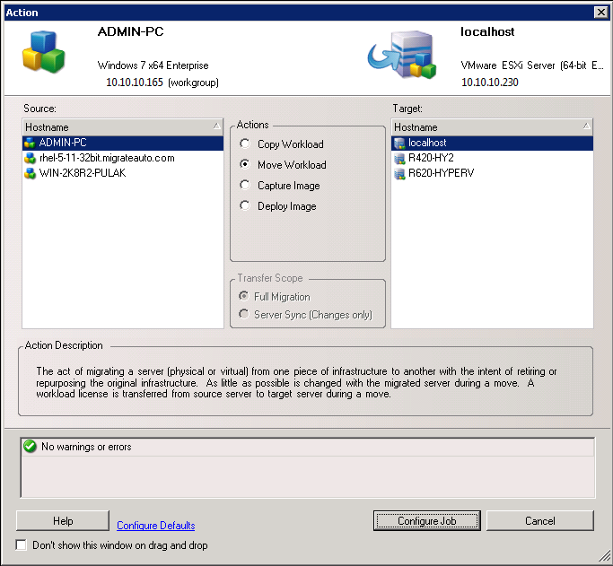 Click Configure Job to access the Peer-to-Peer Migration Job window.