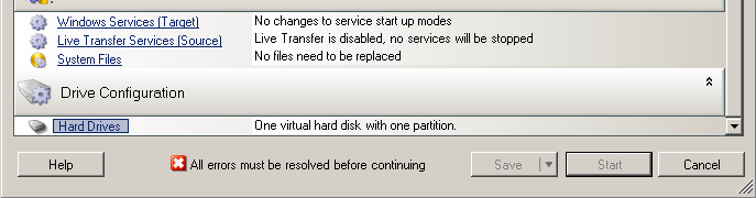 In the Drive Configuration of the Migration Job windows, click Hard Drives.