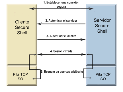 El siguiente diagrama señala los pasos básicos a seguir en la creación de un canal Secure Shell y su utilización para la transmisión de datos de manera segura.