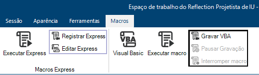 2. Na guia Macros da Faixa, clique em Gravar VBA para iniciar a gravação. (se este botão não estiver visível, expanda a janela).