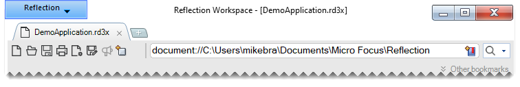 Cuando usted abre un diseño, Reflection abre todos los documentos que tenía abiertos cuando guardó el diseño, se conecta a las sesiones configuradas y restablece su Espacio de trabajo al mismo tamaño y ubicación de cuando lo guardó.