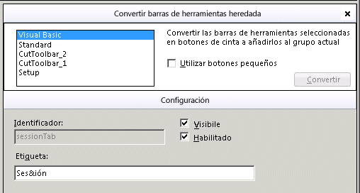 Importar barras de herramientas heredadas de VT en el modo Cinta