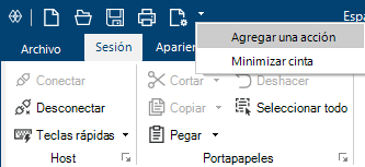Haga clic en el menú de la barra de herramientas de acceso rápido y, a continuación, seleccione Agregar una acción.