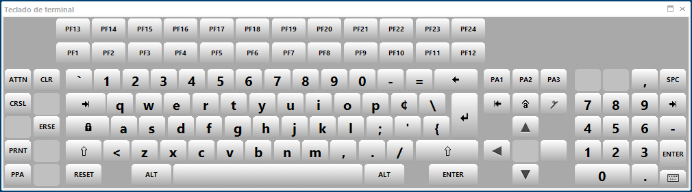 Puede visualizar un teclado de terminal gráfico que le permite utilizar el ratón o la pantalla táctil para introducir datos o utilizar teclas especiales en sus sesiones IBM o de sistemas abiertos. Puede elegir entre varios teclados preinstalados.