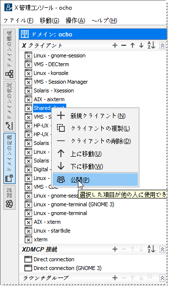 セッション定義の下で、このクライアントが使用するセッション定義を右クリックして、この定義を公開します。