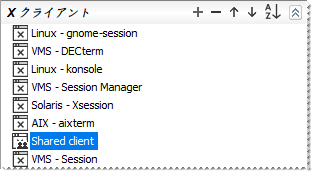 ドメインにログインしているすべてのユーザが公開クライアントを使用できますが、変更できるのは管理者だけです。公開クライアントは以下の記号で識別します。