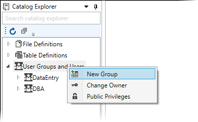 1. In the Catalog Explorer pane, right-click the User Groups and Users node, then click New Group.