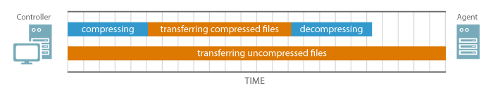 データ ファイルの圧縮が有用かどうかは、ユーザーの環境や負荷テストに強く依存します。一般的な規則として、「データ ファイルの圧縮、転送および解凍にかかる時間が、圧縮せずにファイルを転送するのにかかる時間よりも小さい場合、データ ファイルの圧縮は有用である」と言えます。